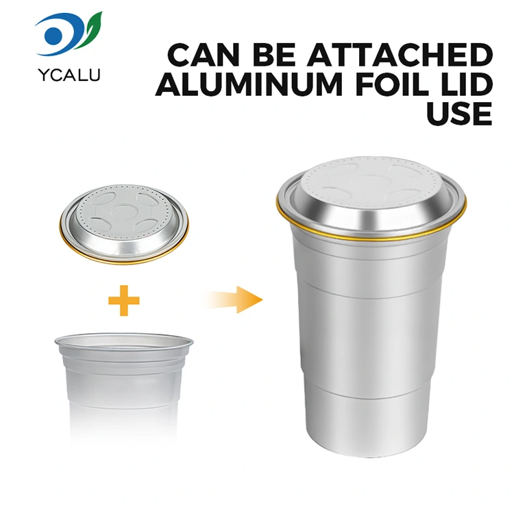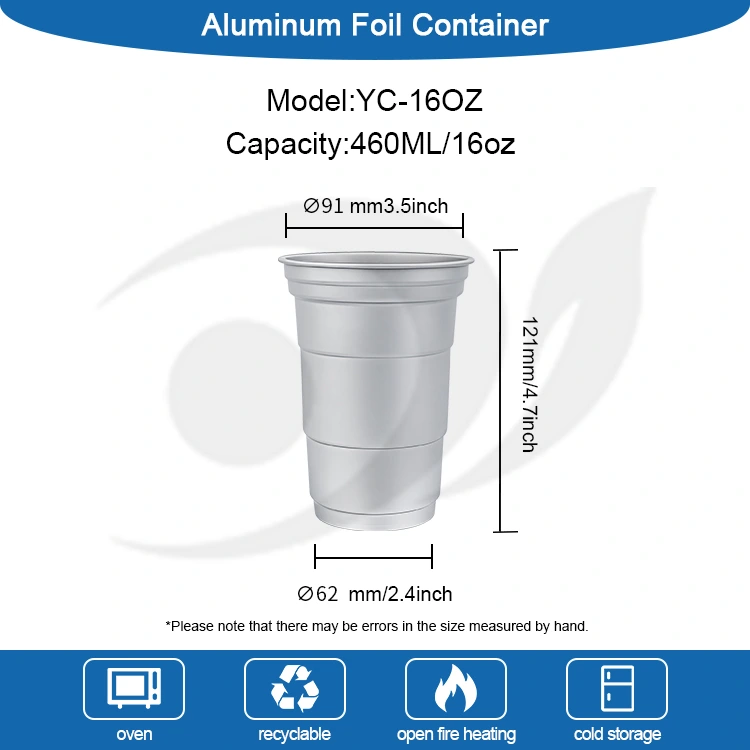 In tegenstelling tot algemene containers is de Yunchu 16oz wegwerpbare drinkbeker van aluminiumfolie speciaal ontworpen om verpakkingsoplossingen te bieden voor merken in specifieke scenario's. Met zijn compacte formaat (460 milliliter) voldoet deze aanpasbare wegwerpbare drinkbeker van 16 oz op maat van aluminiumfolie aan de consumptiegewoonten van instantdranken voor éénmalig gebruik. Deze op maat gemaakte wegwerpfeestbekers van aluminiumfolie van 16 oz zijn bijzonder geschikt voor afhaal-, markten- of kampeeractiviteiten, naast de praktische functies. In de eerste plaats kan het de merkwaarde helpen vergroten.