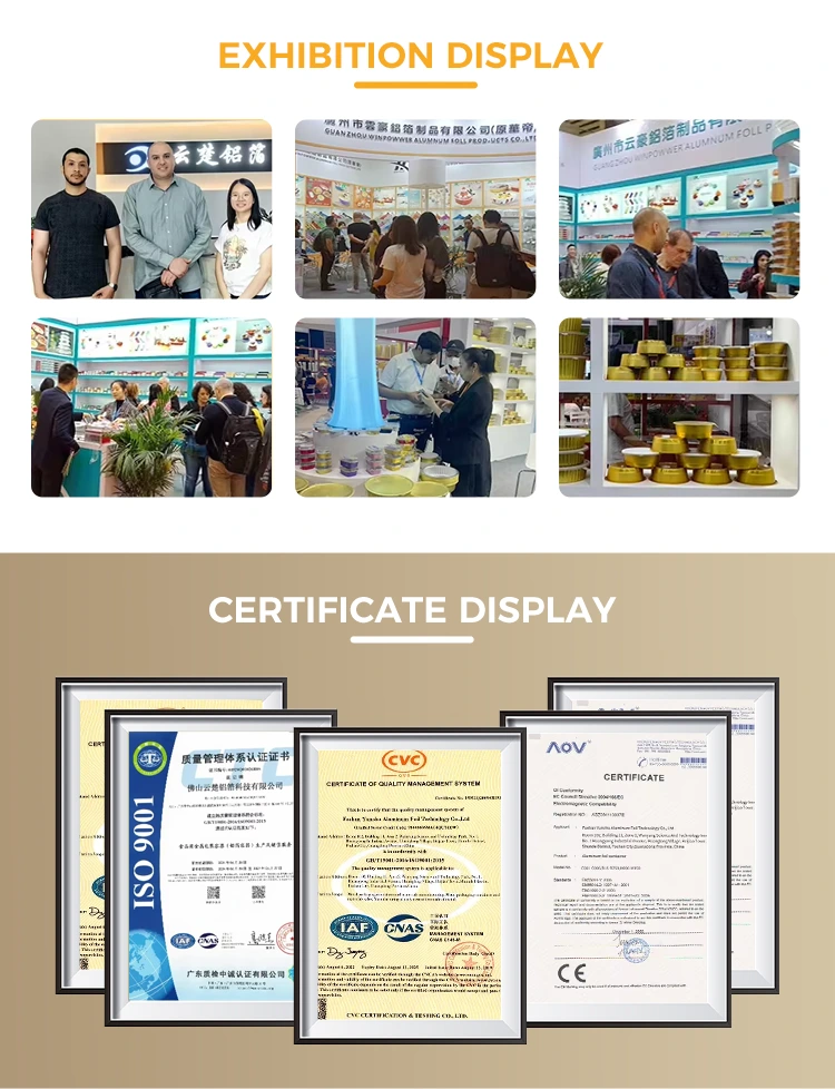 Catering- en retailscenario's: coffeeshops, melktheewinkels en sapwinkels kunnen worden gebruikt voor het bewaren van kleine drankjes en monsters. De voortreffelijke capaciteit en metaalachtige glans versterken de merktextuur; ijssalons en dessertwinkels kunnen worden gebruikt als mini-dessertbekers voor het vervoeren van ijsballetjes, kleine porties mousse, enz. Het aluminiummateriaal kan de lage temperatuur beter handhaven en de houdbaarheid van de smaak verlengen. De professionele productiemogelijkheden van Yunchu Aluminium Foil kunnen de aanpassing van merklogo's op de bekerbehuizing ondersteunen, waardoor handelaren de merkherkenning kunnen versterken.