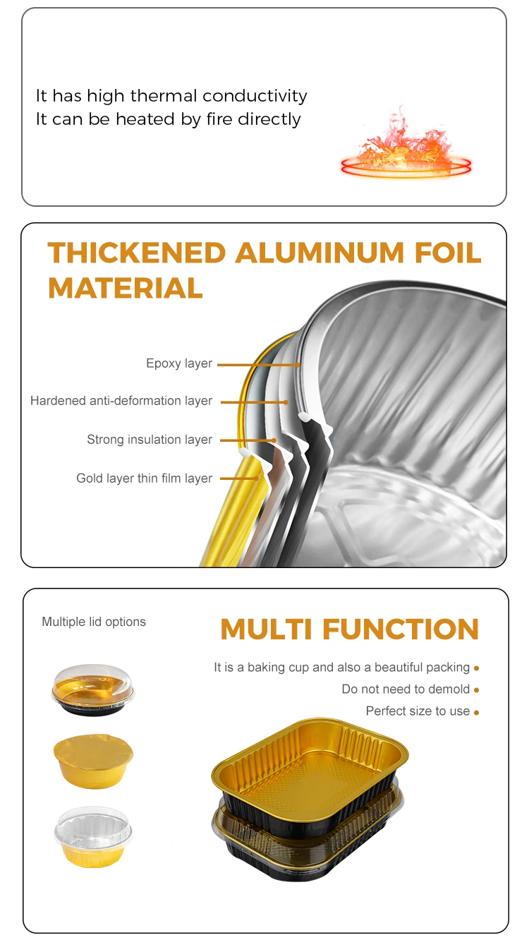 De wegwerpbare rechthoekige catering afhaal-lichtwandige aluminiumfoliecontainers van Yunchu-aluminiumfolieleverancier zijn gemaakt van voedselkwaliteit. Ze zijn strikt verwerkt en gescreend en hebben geen eigenaardige geur. Het gehele productieproces wordt uitgevoerd in een schone en stofvrije werkplaats zonder schadelijke toevoegingen. Rijst, vlees, soep, etc. kunnen ook in direct contact komen. Deze aluminiumfoliecontainer is geslaagd voor de Amerikaanse FD A-certificering voor voedselkwaliteit en volgt strikt de FDA-normen. Na professionele testen is de hoeveelheid aluminiummigratie veel lager dan de gespecificeerde limiet en voldoet de test aan de norm. We hebben een formeel testrapport ontvangen. Het kan niet alleen worden gebruikt in de binnenlandse catering, maar voldoet ook volledig aan de eisen voor export naar het buitenland. Dubbele garantie, of het nu gaat om fastfoodketens, privékeukens of grensoverschrijdende afhaalrestaurants, het kan worden gebruikt. Het is betrouwbaar en is gemakkelijk bestand tegen extreme temperatuurverschillen van -20°C tot 250°C. Van koel- en vriesopslag in de koelkast tot verwarming in de magnetron, bakken in de oven en zelfs verwarming met open vuur (vereist gereedschap voor warmte-isolatie), het kan worden gebruikt voor het verpakken van warme soep en warme gerechten om mee te nemen. Zelfs als het lange tijd warm wordt gehouden, zal de container niet zacht worden of vervormen, noch smelten of schadelijke gassen produceren; Nadat consumenten het voedsel hebben ontvangen, hoeven ze de container niet te verwisselen, maar hoeven ze deze direct in de magnetron te plaatsen om te verwarmen. Bovendien geleidt het de warmte gelijkmatig, zodat er geen plaatselijke oververhitting of voedsel vast komt te zitten tijdens het verwarmen. Het kan de smaak van het voedsel optimaal behouden. Of het nu gaat om gebakken rijst, stoofschotels, barbecue of gebakken halffabrikaten, het is geschikt voor verpakkingen.