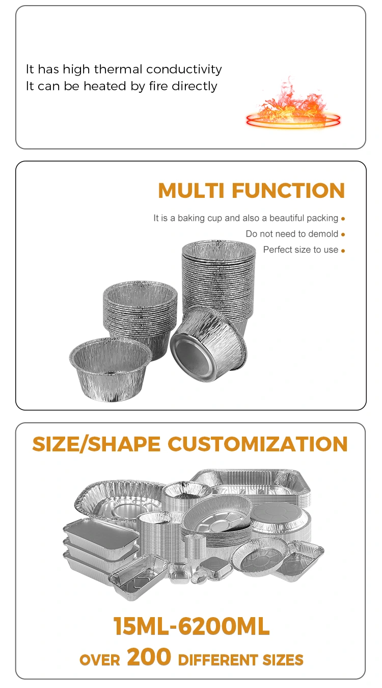 Kenmerken: Gezond en milieuvriendelijk, geen schoonmaak nodig, geschikt voor het maken van diverse huishoudelijke en gebakken lekkernijen. Het is de beste keuze voor gezinnen en bakkerijen. Het aluminiumfoliemateriaal is veilig en hygiënisch, schoonmaken is niet nodig en kan boven open vuur worden gebakken, waardoor het gemakkelijk is om heerlijk eten te maken.