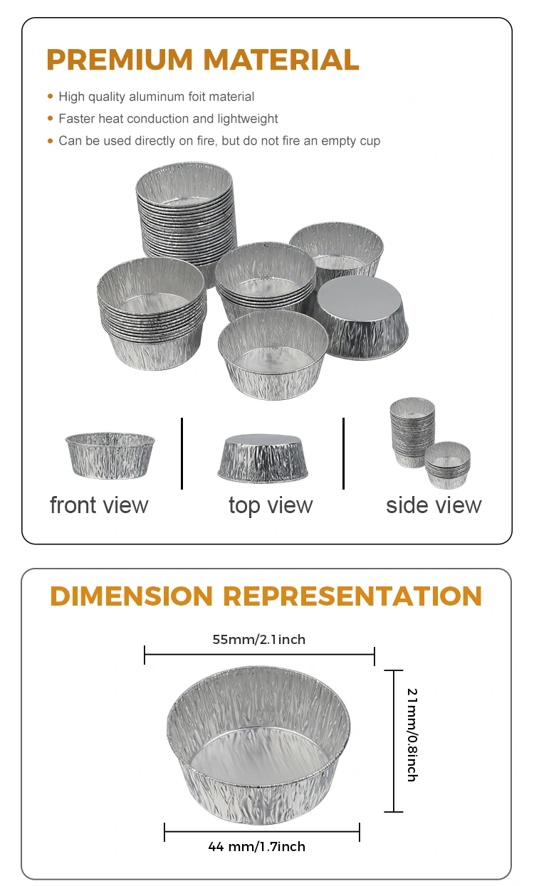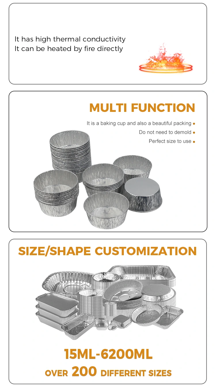 Yunchu Aluminium Foil Supplier's wegwerp zilveren ronde dip luchtfriteuse zilveren aluminiumfolie container is ontworpen om wegwerpbaar te zijn, waardoor de vervelende taak van het afwassen na de maaltijd volledig wordt geëlimineerd, wat tijd en energie bespaart; het aluminiumfoliemateriaal is recyclebaar, milieuvriendelijk en ontlastend, waarbij rekening wordt gehouden met gemak en groene concepten. Klein en prachtig uiterlijk, stapelbare opslag neemt geen ruimte in beslag, waardoor u gemakkelijk opslagruimte in de keuken bespaart. Of het nu thuis of in bedrijven wordt gebruikt, deze zilveren ronde aluminiumfoliecontainer voor eenmalig gebruik kan het probleem van het bewaren en gebruiken van dips oplossen met hoogwaardige materialen en een doordacht ontwerp, waardoor elk koken en elke bijeenkomst zorgeloos en comfortabeler wordt.