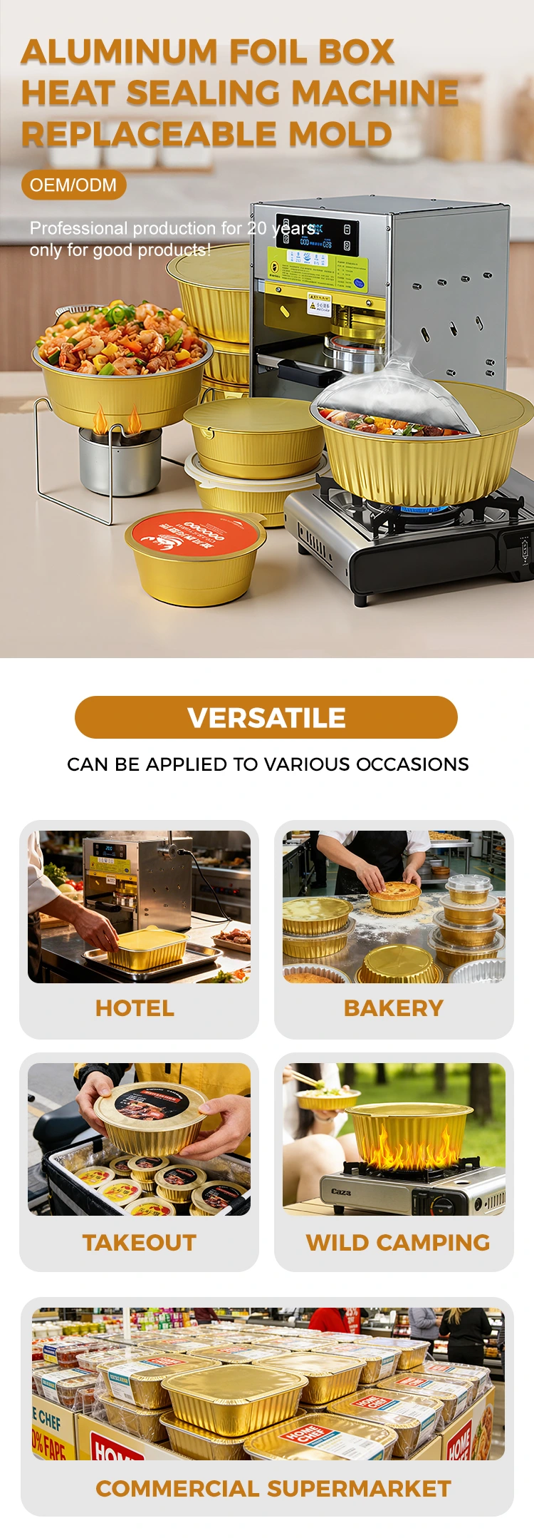 Uitgebreidere scenario's: Horeca: hoogwaardige afhaalbezorging, portiegrootte van banketten, kant-en-klare voedselverpakkingen, waarbij kwaliteit en functionaliteit worden gecombineerd; Foodondernemerschap: Kleine snackworkshops, sausverwerking, e-commerce voor verse voeding, realiseren van professionele verpakkingen tegen lage kosten; Festivalcadeaus: Kerstmis, Lentefestival, Midherfstfestival en andere geschenkdozen voor festivalvoedsel. Het gouden uiterlijk versterkt de feestelijke sfeer en het verzegelde ontwerp zorgt voor de frisheid van de geschenken.
