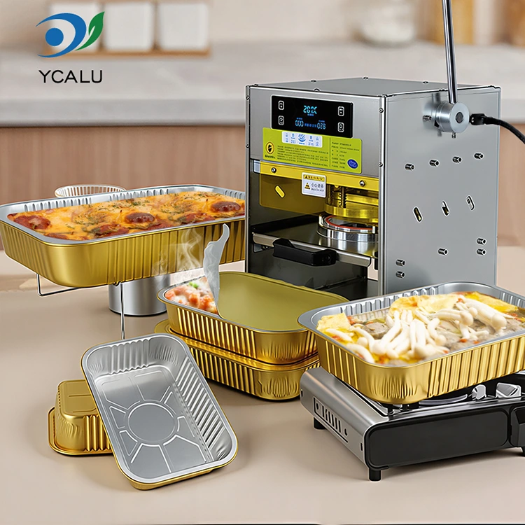 Hottags: Handmatige hittesluitmachine met gouden aluminiumfoliecontainers