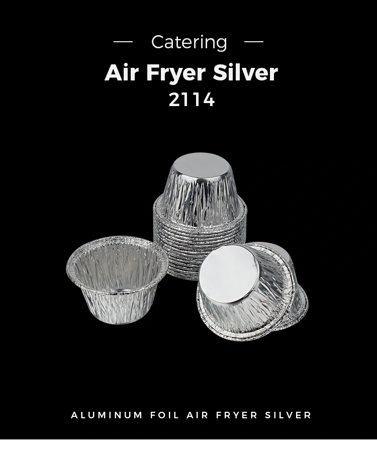 • Eenmalige kleine ronde cake airfryer Zilverkleurige aluminiumfolie voedselcontainersEenmalige kleine ronde cake airfryer Zilverkleurige aluminiumfolie voedselcontainers