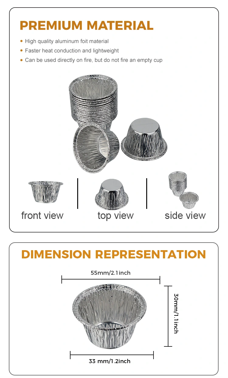 Voor thuisoventoepassingen kunt u aluminiumfoliebekers gebruiken om minicakes en gezonde gebakken puddingen te maken die uw kinderen graag eten. Je hoeft de bakplaat niet schoon te maken en is na de maaltijd eenvoudig weer schoon te maken.