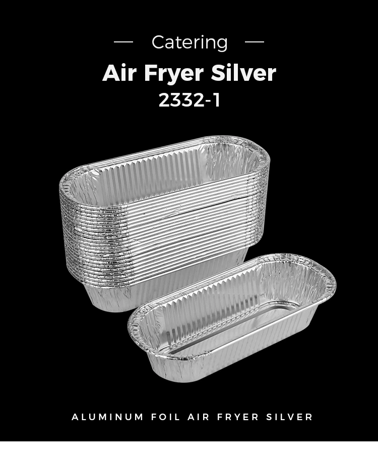 • Ovale luchtfriteuse bakken zilveren aluminiumfoliecontainersOvale luchtfriteuse bakken zilveren aluminiumfoliecontainers