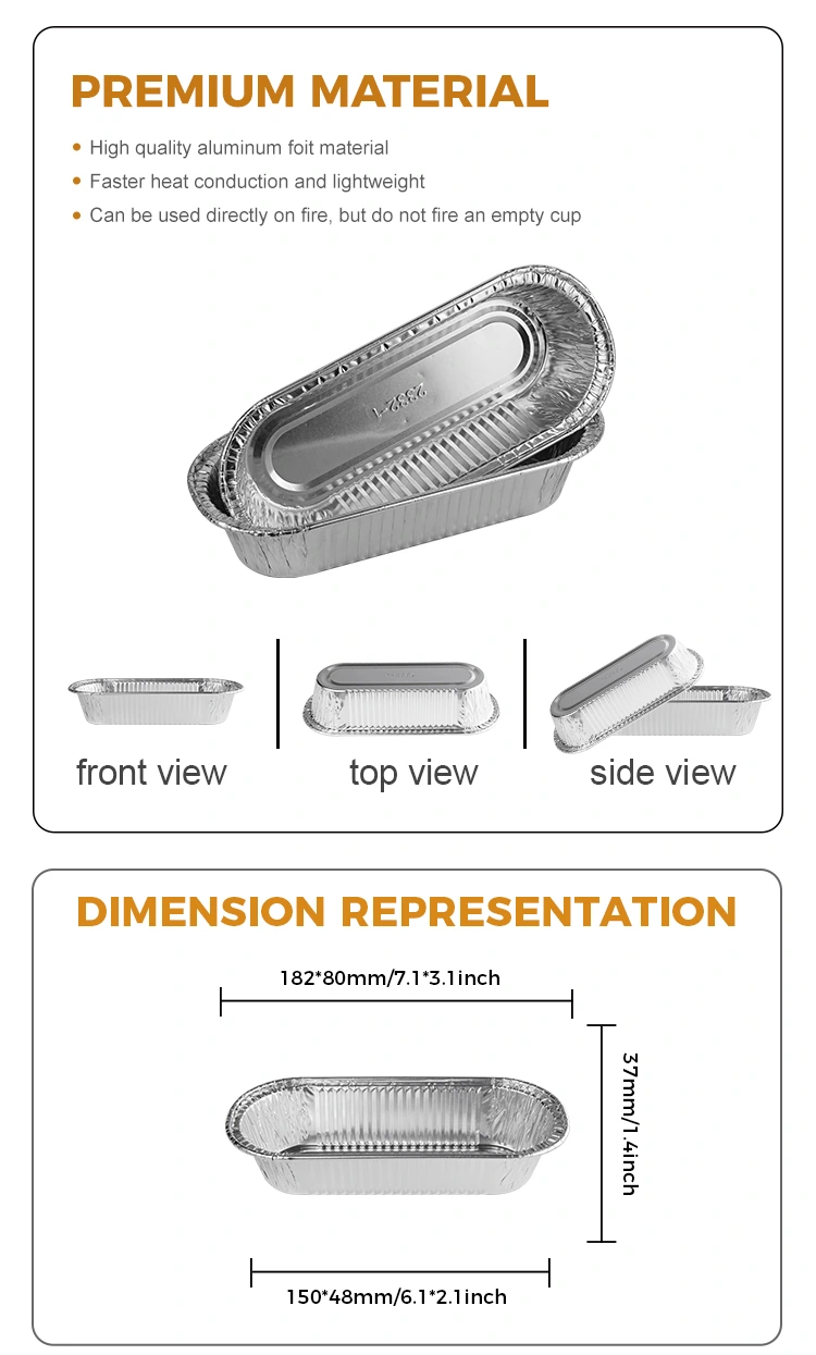 Yunchu aluminiumfolie Leverancier Leverancier Ovale luchtfriteuse Baking Zilver aluminiumfoliecontainers is een type container dat kan worden gebruikt voor stoom-, koken, bakken, bakken en andere doeleinden, en kan worden gebruikt voor sauzen, dompelende sauzen, kleine condimenten en bakmonsters. 8011-0 Type aluminiumfoliemateriaal, trekweerstand en corrosieresistentie hebben een goede verlenging, verdikt aluminiumfoliemateriaal, duurzaam en niet gemakkelijk te breken naar believen, aanzetting, voor- en achterste halfcirkelontwerp doet geen pijn in handen, geïntegreerde vormen, wandoppervlak is zo soepel als een spiegel, rijke grootte geschikt voor gebruik in een verscheidenheid van scenario's.