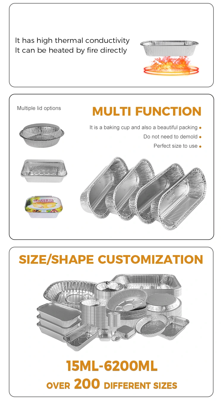 De aluminiumfolie -leverancier van de leverancier van de ovale luchtfolie Bak zilveren foliecontainer is geschikt voor verschillende plaatsen zoals catering, het maken van luchtfriteuzen, afhaalrestaurants, buffetsaus, banket, enz. Of het nu wordt gebruikt als voedsel of saus, deze container kan worden gebruikt in een breed scala aan voedsel- en drinkindustrie. Bovendien kan het worden gecombineerd met gebakken producten, en de kleine foliebeker is niet alleen gemakkelijk te dragen, maar voegt ook schoonheid toe aan het gerecht. Het is niet nodig om het na gebruik schoon te maken en het kan direct worden weggegooid, waardoor het erg handig is om te gebruiken.