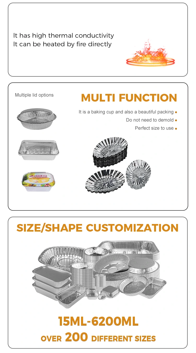Yunchu aluminium folie ovale kanten vla taart zilveren aluminium folie voedselcontainer is een goede partner voor het bakken, zowel als een mal als als een verpakking. Het is gemaakt van verdikt en hard materiaal, wat niet gemakkelijk te vervormen is en een sterke drukweerstand heeft, zodat je afscheid kunt nemen van de moeite om de pot te wassen en gemakkelijk de pot te beschermen. Isoleervet, niet nodig om na gebruik te wassen, gladde bodem is niet eenvoudig te verbranden en aan de bodem te plakken, blijft niet aan voedsel, gemakkelijk te koken. De bodem is glad, zodat u het met meer gemoedsrust kunt gebruiken, gemakkelijk om de mal los te laten bij het gebruik van hoge temperatuur, gemakkelijk om de mal af te geven nadat het eindproduct is voltooid, niet aan de bodem blijft, de vorm niet beschadigt. Dikkeld en hard materiaal, sterke drukweerstand, zeg afscheid van de moeite van het wassen van potten en beschermt gemakkelijk de pot. Isoleervet, niet nodig om na gebruik te wassen, gladde bodem is niet eenvoudig te verbranden en aan de bodem te plakken, blijft niet aan voedsel, gemakkelijk te koken. De bodem is glad, deze kan -20 ° C tot 300 ° C zijn, deze kan over een open vlam worden verwarmd en de mal wordt gelijkmatig verwarmd.