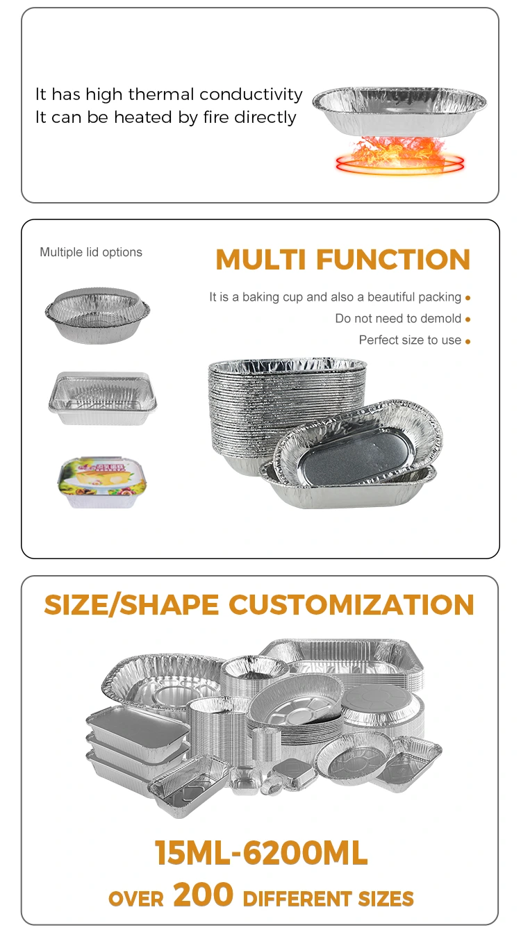 Vanwege het kleine en lichtgewicht ontwerp, is deze ovale geroosterde zilveren aluminiumfolie -foliecontainer perfect voor het dragen en opslaan van voedsel, geschikt voor gebruik en aanpassing van de voedselwinkel in winkels, fastfoodrestaurants en meer. Het concave en convexe textuurontwerp onderaan helpt om wrijving te verbeteren en warmte gelijkmatig te verdelen en lokale oververhitting te voorkomen. Bovendien is de aluminiumfolie -doos verdikt om de compressieweerstand en duurzaamheid te verbeteren, en het kan zelfs tijdens het transport stabiel blijven en is het niet gemakkelijk te vervormen.