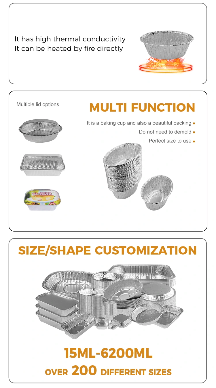 Kenmerken: Gezond en milieuvriendelijk zonder schoon te maken, een verscheidenheid aan familie te maken, kleine delicatessen te bakken, is de keuze van gezinnen en bakkerijen, aluminiumfoliemateriaal is veilig en hygiënisch, geen reiniging, kan worden gebakken over een open vlam, handig om voedsel te maken.