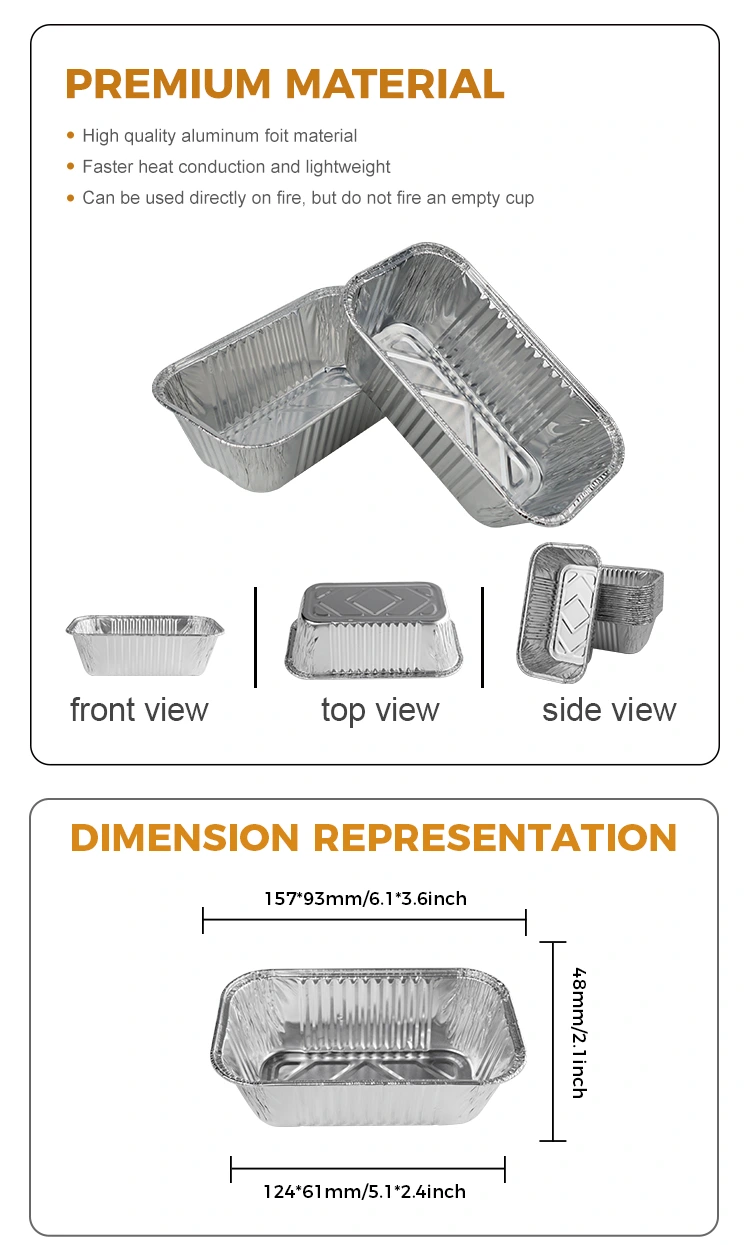 De rechthoekige luchtfriteuze grill van zilveren aluminiumfolie van yunchu aluminiumfolie leverancier is geschikt voor verschillende gelegenheden, zoals luchtfriteuzen, bakken, catering afhaalmaaltijden, feesten en locaties voor zelfbediening. Het kan worden gebruikt om voedselproducten te maken zoals vierkant brood, gebakken koekjes, grills en luchtfritenten en kan worden gebruikt met een verscheidenheid aan voedingsmiddelen. Met een capaciteit van 450 ml is deze container in staat om de meeste voedselproducten vast te houden en wordt het geleverd met een volledig transparant deksel met huisdierfolie om stof en andere verontreinigingen effectief te voorkomen. De gladde buitenmuren maken het gemakkelijk om te stapelen en op te slaan, waardoor ruimte wordt bespaard. Het is veilig en gezond om te gebruiken, en het is zeer milieuvriendelijk en het materiaal is recyclebaar, waardoor het gemakkelijk te dragen en opnieuw te gebruiken.