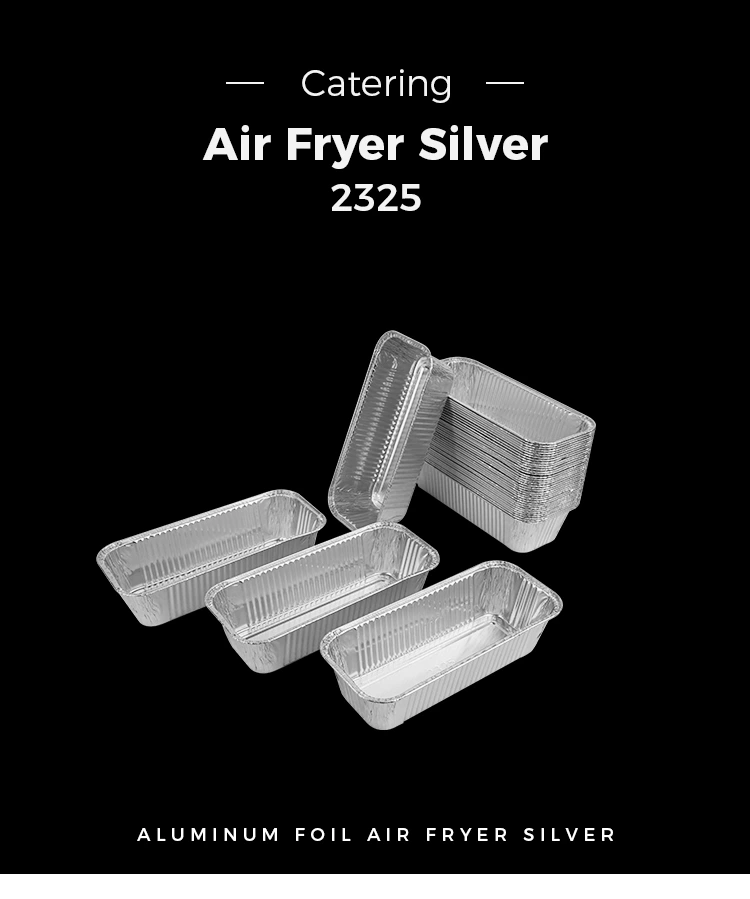 • Rechthoekige luchtfriteuseafhaalcontainers van zilveren aluminiumfolieRechthoekige luchtfriteuseafhaalcontainers van zilveren aluminiumfolie
