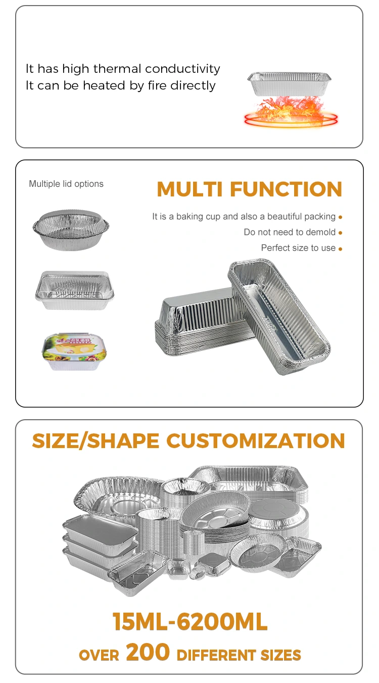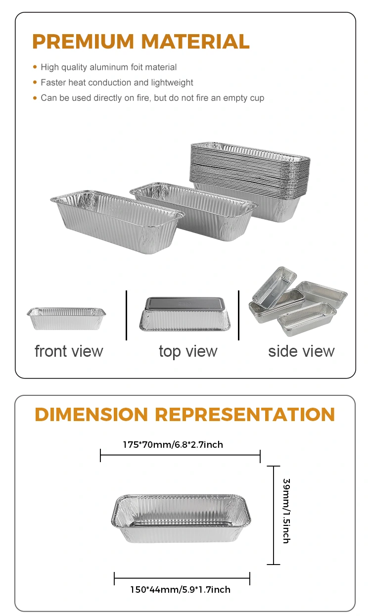De rechthoekige broodbak zilveren aluminiumfoliecontainers geleverd door Yunchu aluminiumfolie leverancier is gemaakt van voedingsmiddelenmaterialen en is geschikt voor verschillende toepassingsscenario's. Dit product is met name geschikt voor grillen en bakdoeleinden, zoals het maken van lange broden of bakken. Of het nu gaat om houtskoolgrilling of als een afhaalbox, het is perfect voor gebruik.