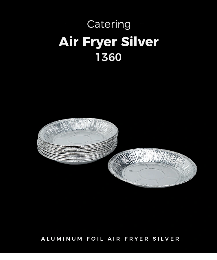 • Ronde luchtfriteuse bakken zilveren aluminium folie voedselcontainerRonde luchtfriteuse bakken zilveren aluminium folie voedselcontainer