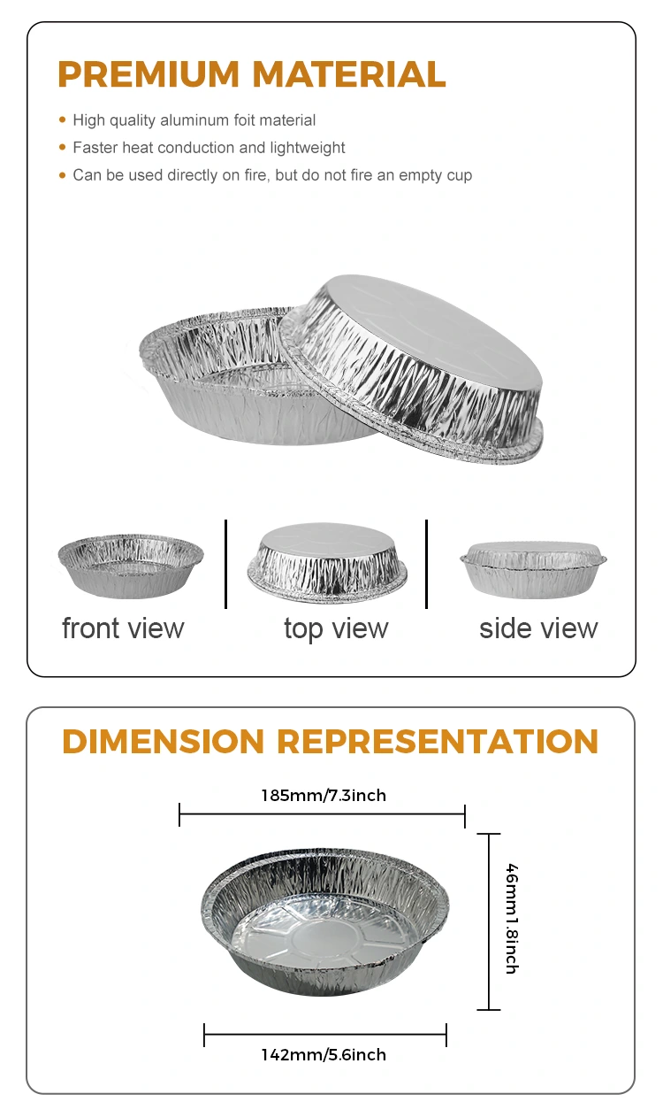 Kenmerken: Molden uit één stuk verdikt en gebakken resistent, het aannemen van aluminiumfoliemateriaal voor voedselcontactkwaliteit, wees gerust om contact op te nemen met voedsel, niet gemakkelijk te vervormen en niet te lekken, sterke dikte, corrosieweerstand, weerstand tegen hoge temperatuur.