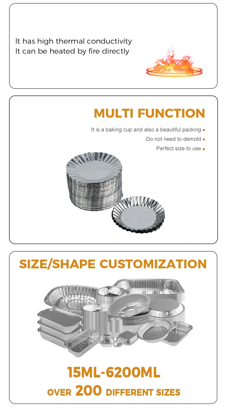 Ronde bakvorm met zilveren aluminiumfolie voedselcontainer geleverd door Yunchu Aluminium Foil Supplier, gemaakt van zilveren aluminiumfolie, zijn ontworpen om uw eten zowel heerlijk als visueel aantrekkelijk te maken. Hoe kunt u voorkomen dat uw voedsel besmet raakt en er toch verfijnder en mooier uitziet? Het antwoord is om een ​​ronde foliemat voor cakevormen te gebruiken!