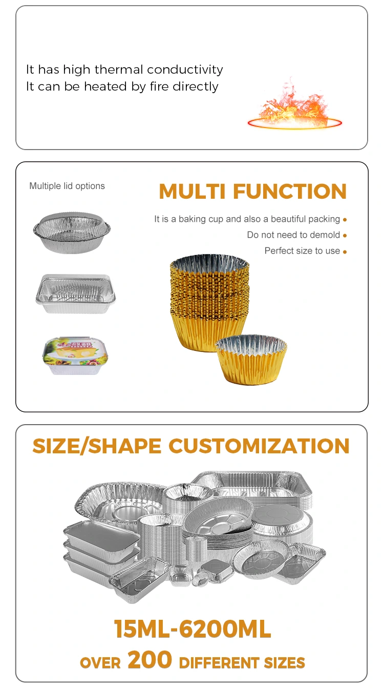Toepassing Dit product wordt zorgvuldig aangepast door de fabriek van Yunchu en is gemaakt van hoogwaardig zilveren aluminiumfoliemateriaal, modelnummer D35-16. Het is ideaal voor het serveren van kleine porties voedsel, zoals snacks en gelei, om te voldoen aan de behoeften van moderne consumenten voor kleine en diverse voedselporties. Het is erg handig voor individuen om alleen te genieten of te delen.