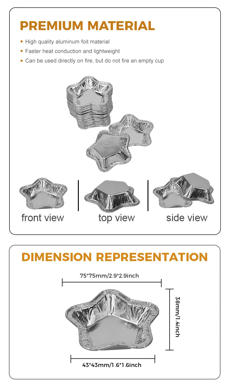 • Stervormige aluminiumfolie taartbekers voor het bakken van aluminiumfolie voedselcontainersStervormige aluminiumfolie taartbekers voor het bakken van aluminiumfolie voedselcontainers